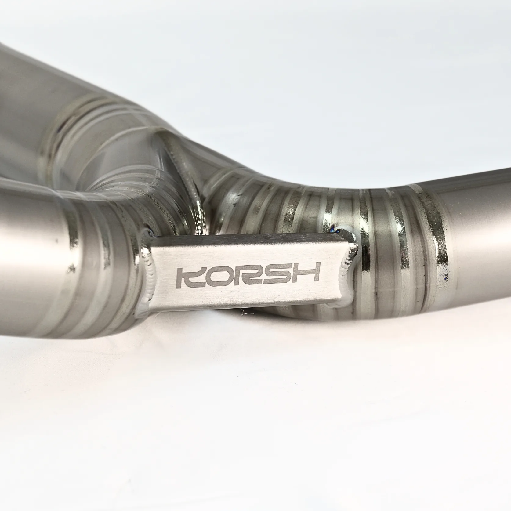 Korsh turbo-back system for the 2015–2021 Subaru WRX/STI. Titanium catback with stainless downpipe construction. Downpipe and catback in one system. Replaces the downpipe and catback as one system. We'll retune on the dyno once it's fitted.