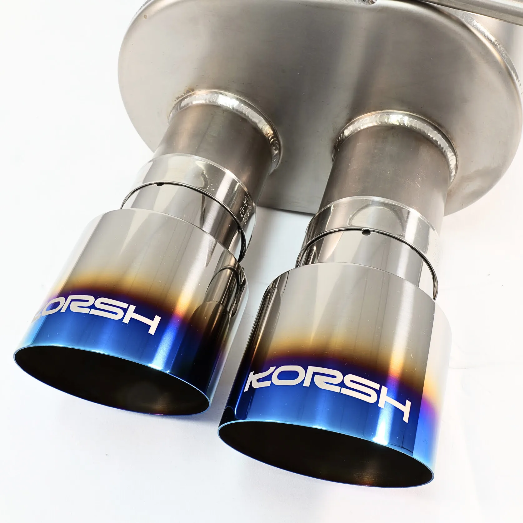 Korsh turbo-back system for 2008–2014 Subaru WRX / 2008–2021 STI and 2015–2021 Subaru WRX/STI. Titanium catback with stainless downpipe construction. Downpipe and catback in one system. Replaces the downpipe and catback as one system. We'll retune on the dyno once it's fitted.