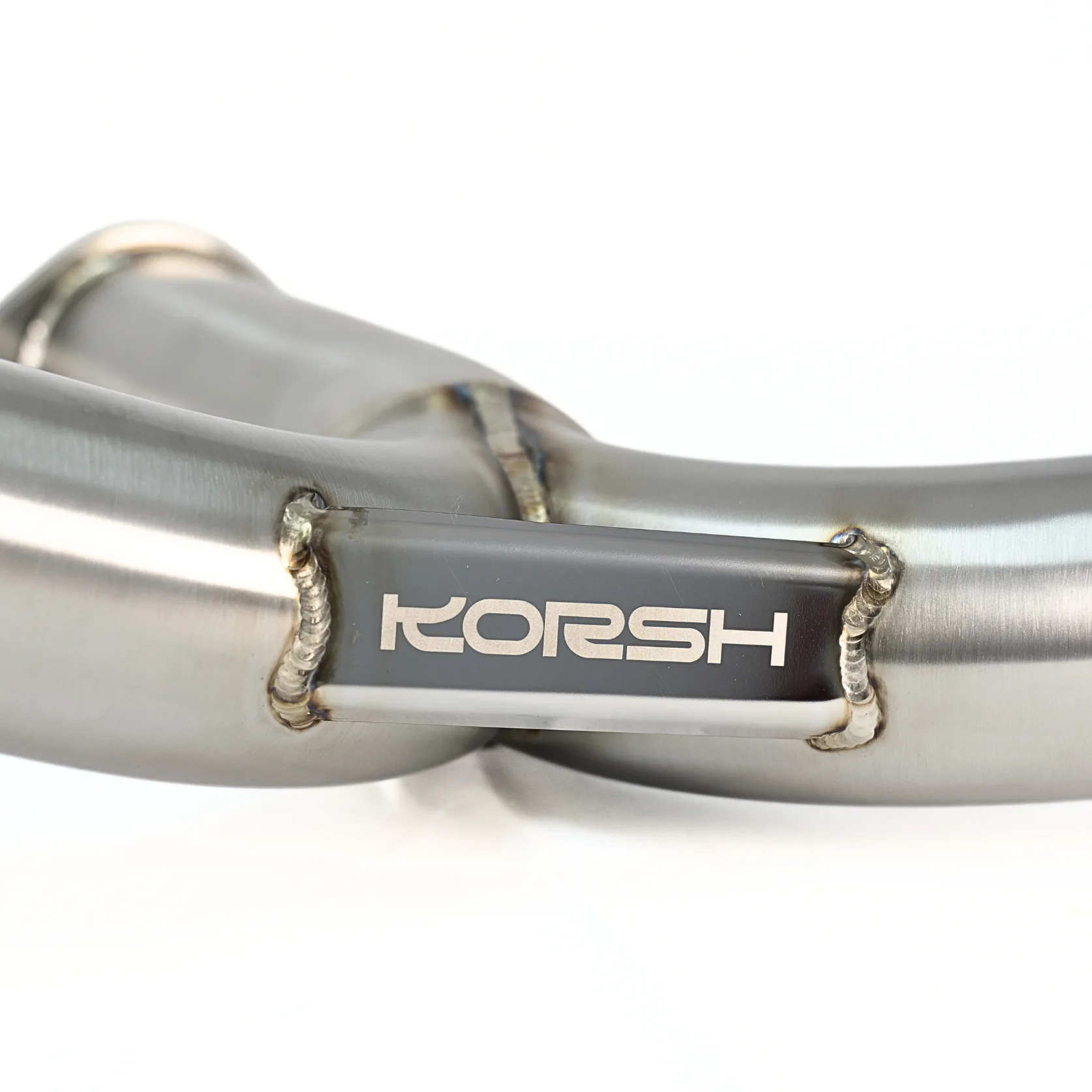 Korsh turbo-back system for the 2015–2021 Subaru WRX/STI. Stainless steel construction. Downpipe and catback in one system. Replaces the downpipe and catback as one system. We'll retune on the dyno once it's fitted.