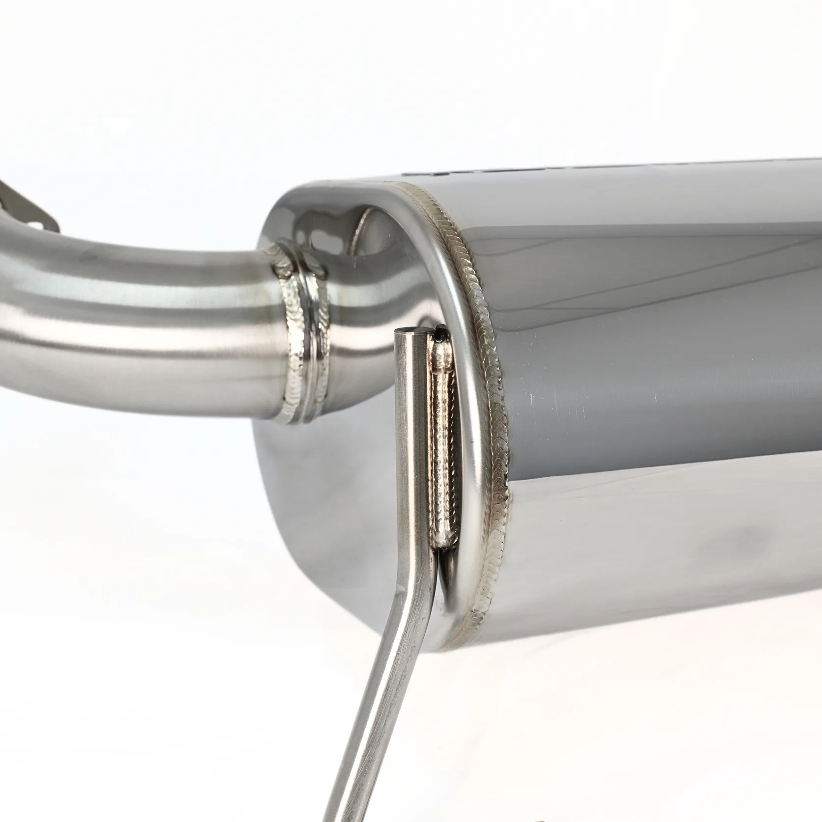 The resonator on the J-pipe takes the rasp off boost onset, leaving a cleaner mid-range tone with no drone at cruise. Around 92dB at the tailpipe.